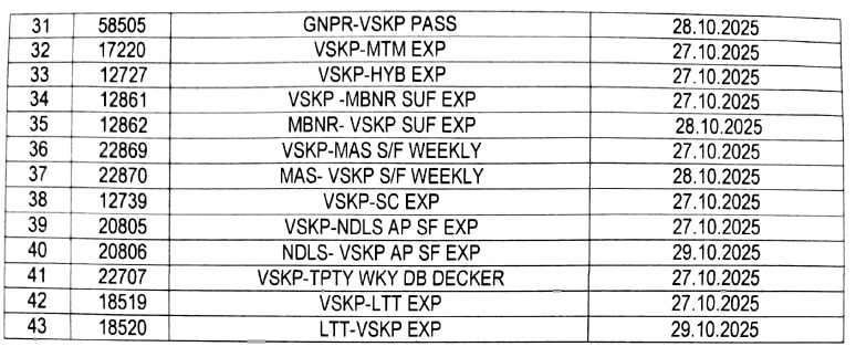 Passengers, Kindly take note and plan your #travel #SouthernRailway #CycloneMontha pic.twitter.com/LEpZGVXgAu