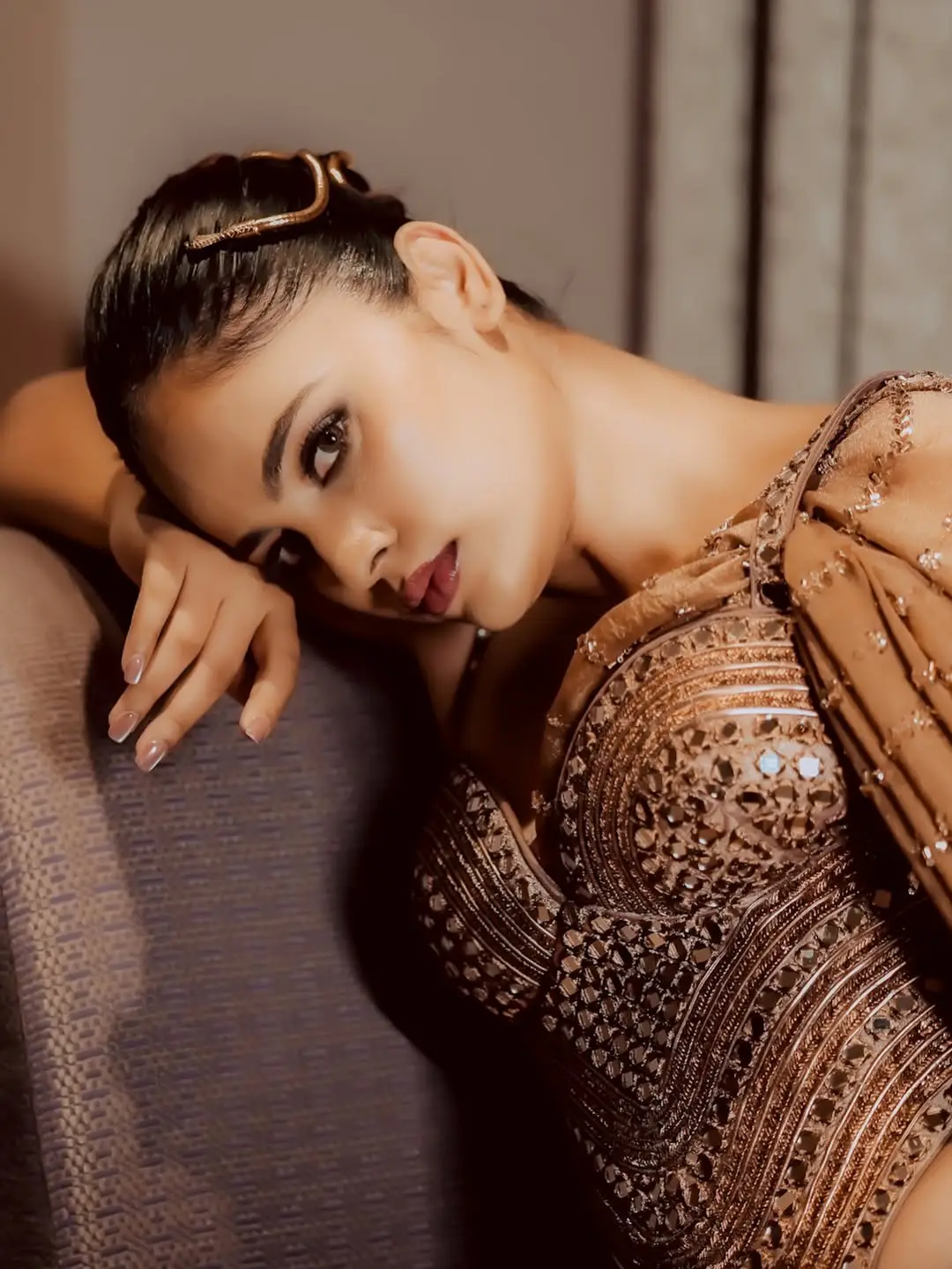 హాట్ బ్యూటీ నందిత శ్వేత(Nandita Swetha) గ్లామర్ రచ్చ మాములుగా ఉండదు. సినిమాల్లోనే కాదు సోషల్ మీడియాలో కూడా హాట్ హాట్ పిక్స్ షేర్ చేస్తూ రచ్చ రచ్చ చేస్తూ ఉంటుంది. తాజాగా ఈ బ్యూటీ గోల్డ్ కలర్ డ్రెస్సులో మెరిసిపోతూ కనిపించింది. మరి లేట్ ఎందుకు మీరు కూడా ఆ అందాలను చూసేయండి.