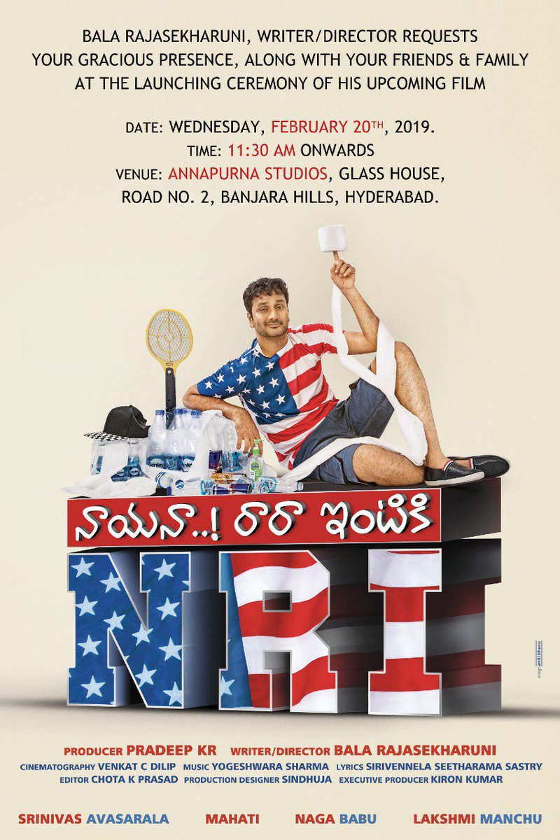 శ్రీనివాస్ అవసరాల.. నటుడిగా ఇండస్ట్రీలోకి ఎంట్రీ ఇచ్చి, రైటర్, డైరెక్టర్గా మంచి గుర్తింపు తెచ్చుకున్నాడు. శ్రీనివాస్ ఫుల్ లెంగ్త్ హీరోగా చేసిన బాబు బాగా బిజీ నిరాశ పరిచింది. ఇప్పుడు శ్రీనివాస్ అవసరాల, లక్ష్మీ మంచు, మహతి, నాగబాబు మెయిన్ లీడ్స్గా ఒక సినిమా రూపొందబోతుంది. ప్రదీప్ కెఆర్ నిర్మిస్తుండగా, బాల రాజశేఖరుని డైరెక్ట్ చెయ్యనున్నాడు. ఈ మూవీకి ఎన్నారై.. నాయనా..! రారా ఇంటికి అనే టైటిల్ ఫిక్స్ చేసారు. ఫిబ్రవరి 20 న సినిమా ప్రారంభం కానుంది. ఈ సందర్భంగా రిలీజ్ చేసిన పోస్టర్ ఆకట్టుకుంటుంది.