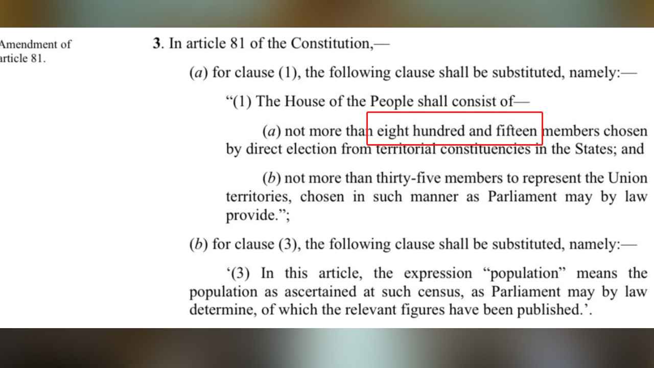 131వ రాజ్యాంగ సవరణ ద్వారా లోక్ సభ సీట్ల సంఖ్య 543 నంచి 850కి పెరగనుంది.