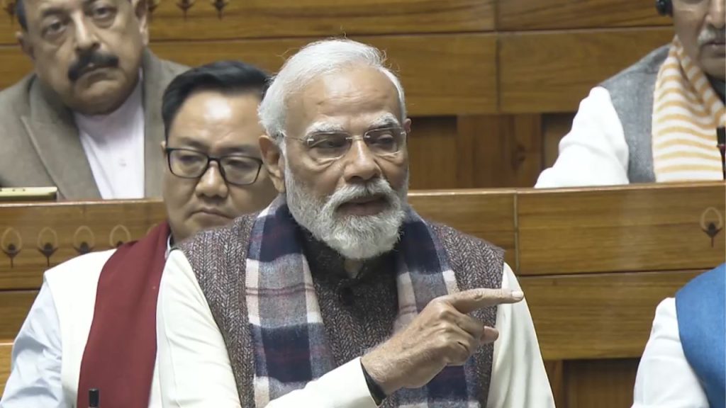 ఈ సందర్భంగా లోక్సభలో ప్రధాని మోదీ మాట్లాడారు. దేశ తొలి ప్రధాని జవహర్లాల్ నెహ్రూపై విమర్శలు గుప్పించారు. జాతీయ గేయం వందేమాతరంపై అప్పట్లో ముహమ్మద్ అలీ జిన్నా లేవనెత్తిన అభ్యంతరాలను జవహర్లాల్ నెహ్రూ కూడా లేవనెత్తారని అన్నారు. కొన్ని మతాలను ప్రసన్నం చేసుకోవడానికి ప్రయత్నించారని చెప్పారు.
