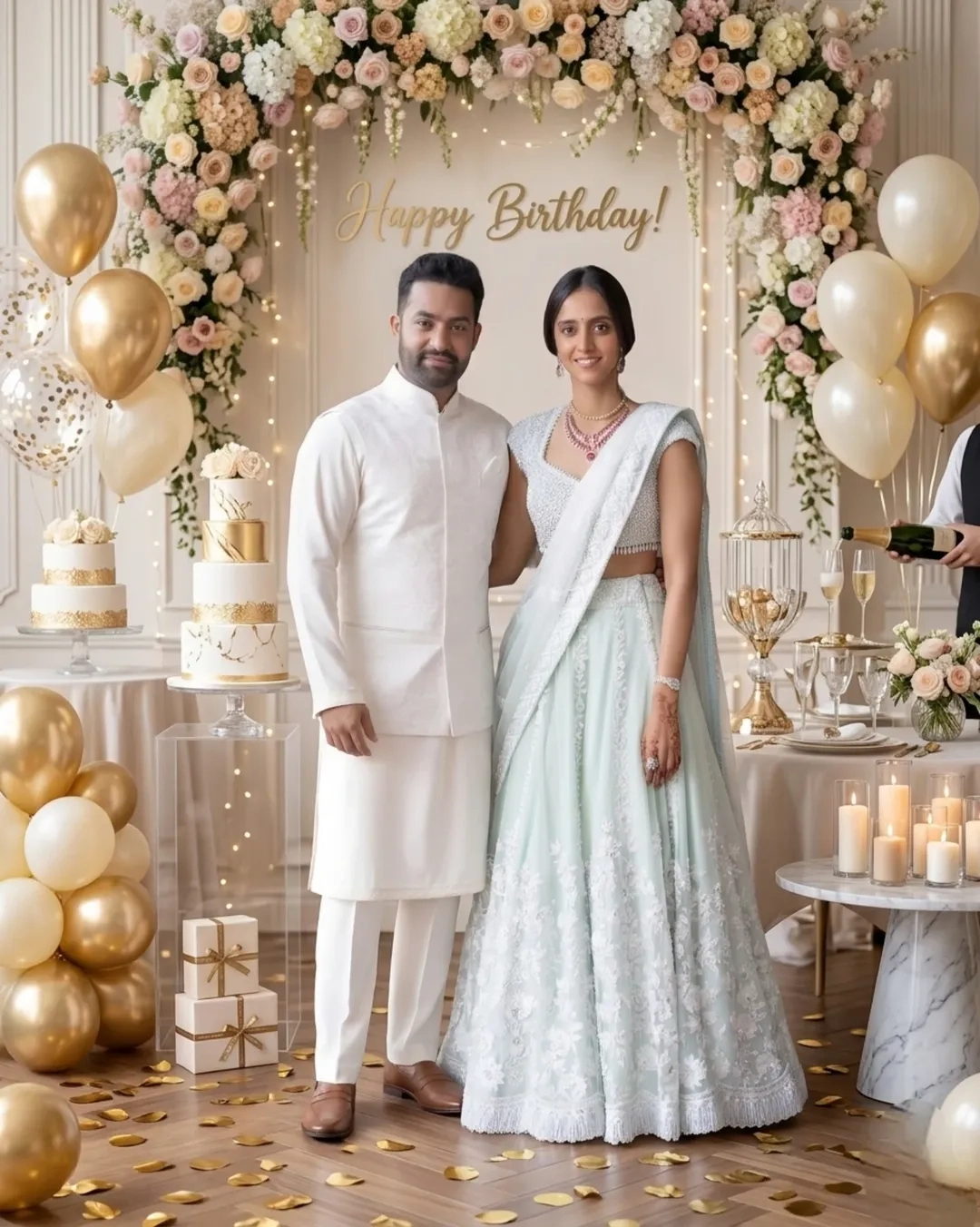 జూనియర్ ఎన్టీఆర్ భార్య లక్ష్మీ ప్రణతి బర్త్ డే నేడు (మార్చి 26). భార్య పుట్టిన రోజు వేడుకలను (HBD Lakshmi Pranathi) ఎన్టీఆర్ ఎంతో ఘనంగా నిర్వహించారు. ఇందుకు సంబంధించిన ఫోటోలు సోషల్ మీడియాలో వైరల్ అవుతున్నాయి.
