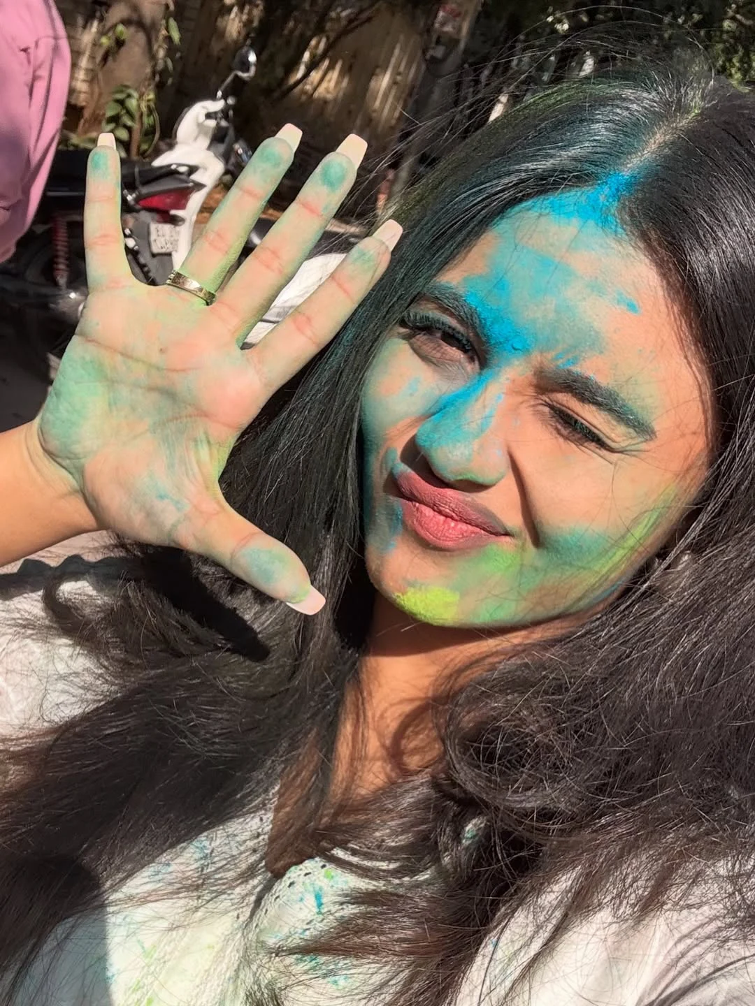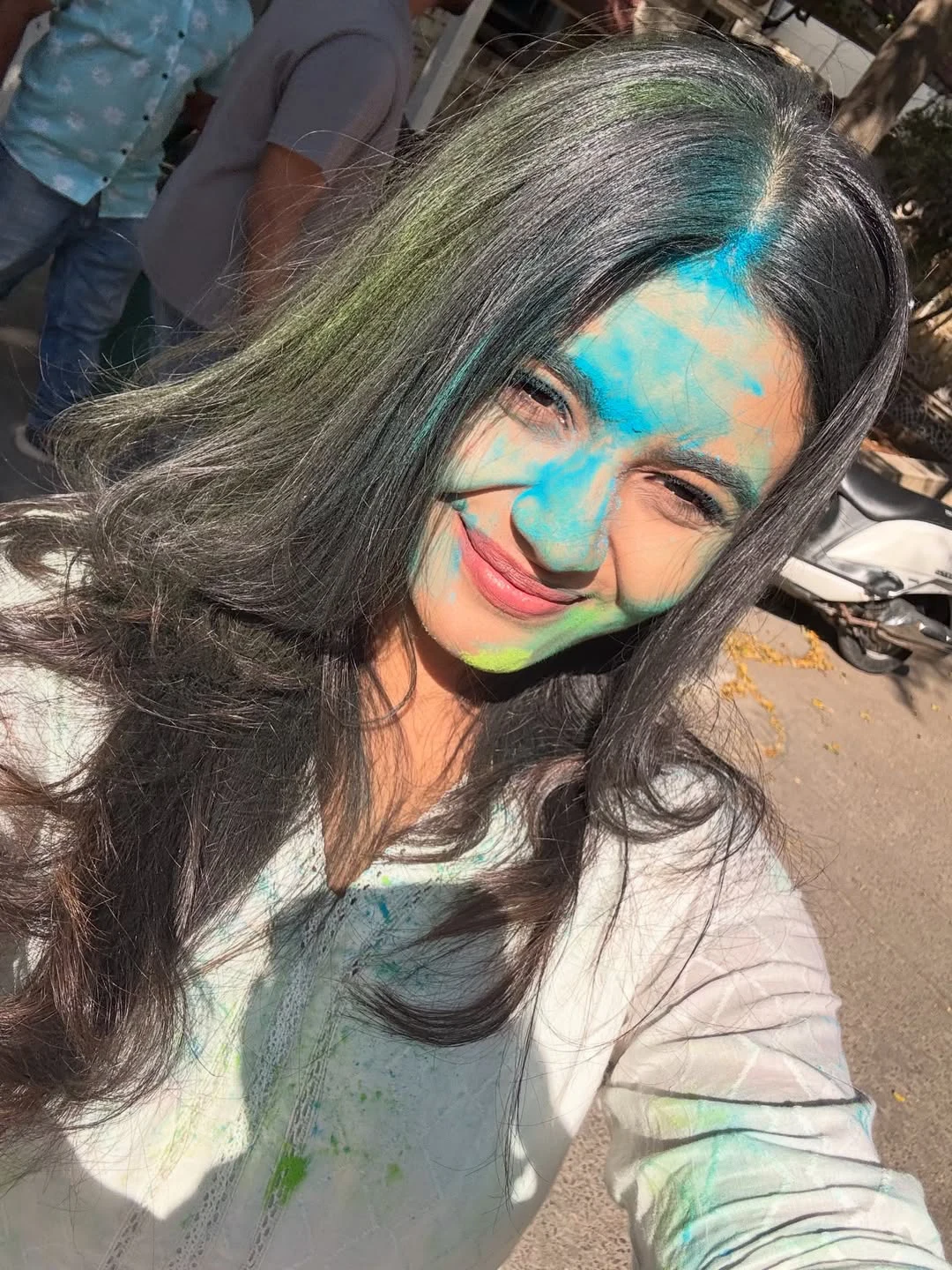 నేడు హోలీ సందర్భంగా వరుసగా హిట్స్ కొడుతున్న హీరోయిన్ నయన్ సారిక హోలీ సెలబ్రేట్ చేసుకొని ఇలా ముఖంపై రంగులతో ఫొటోలు షేర్ చేసింది. నయన్ సారిక వరుసగా ఆయ్, క, విష్ణు విన్యాసం సినిమాలతో హ్యాట్రిక్ హిట్స్ కొట్టింది టాలీవుడ్ లో.