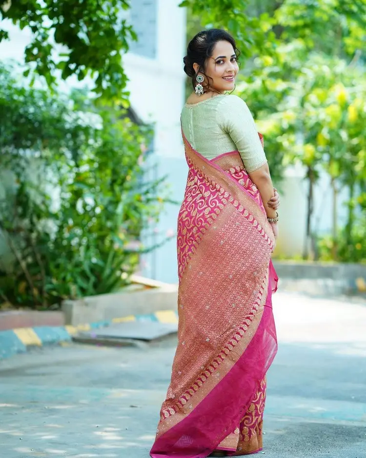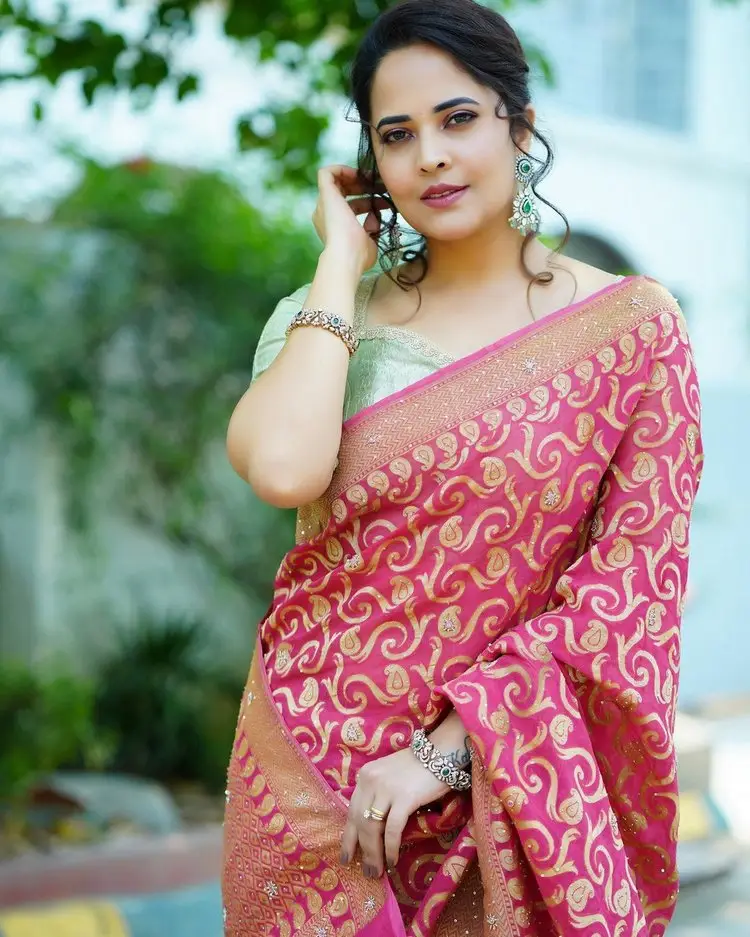 అందాల భామ అనసూయ భరద్వాజ్ నిత్యం హాట్ ఫోటోషూట్స్తో సోషల్ మీడియాలో ఎలాంటి రచ్చ చేస్తుందో అందరికీ తెలిసిందే. ఆమె స్టైలిష్ లుక్స్తో, అల్ట్రా మోడ్రన్ డ్రెస్సులతో కుర్రకారుకు నిద్రలేకుండా చేస్తుంది. తాజాగా చీరకట్టులో పద్ధతిగా ఉన్న అనసూయ అందాలను చూసి ఫ్యాన్స్ ఫిదా అవుతున్నారు.