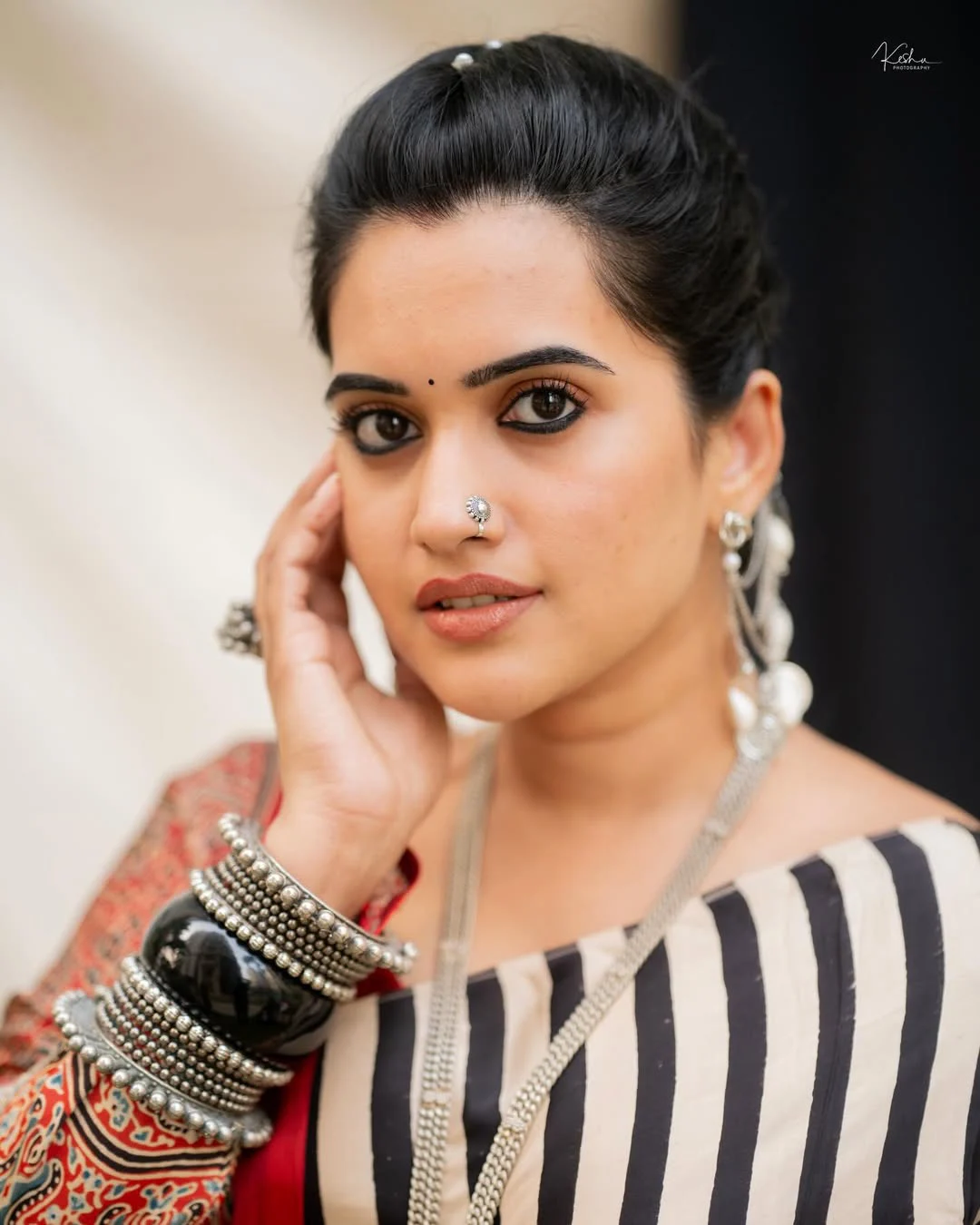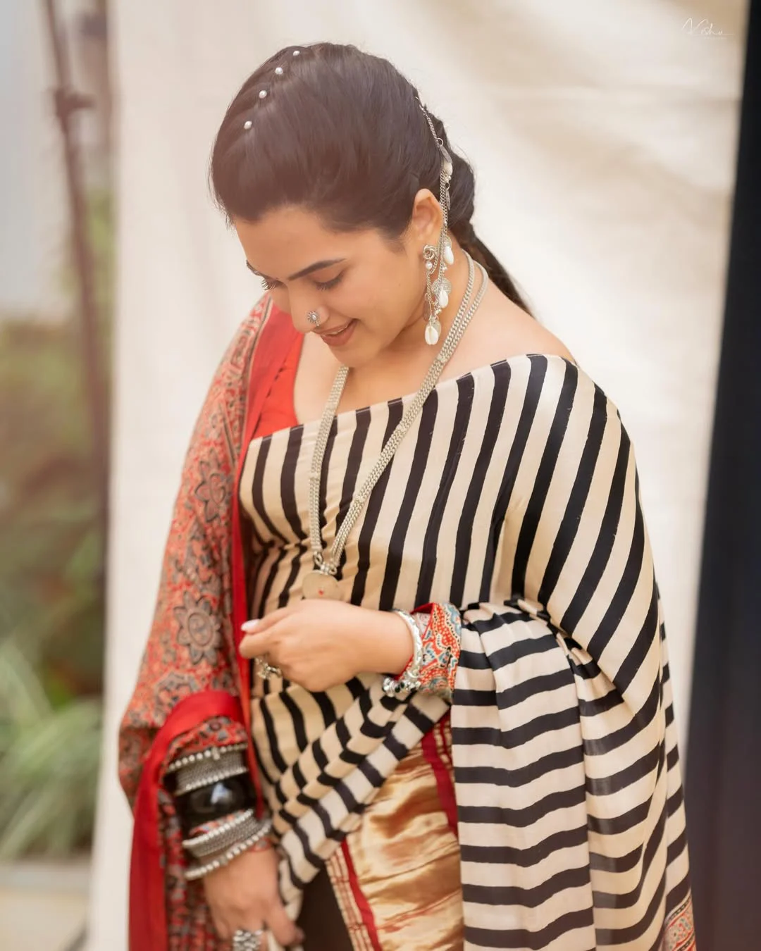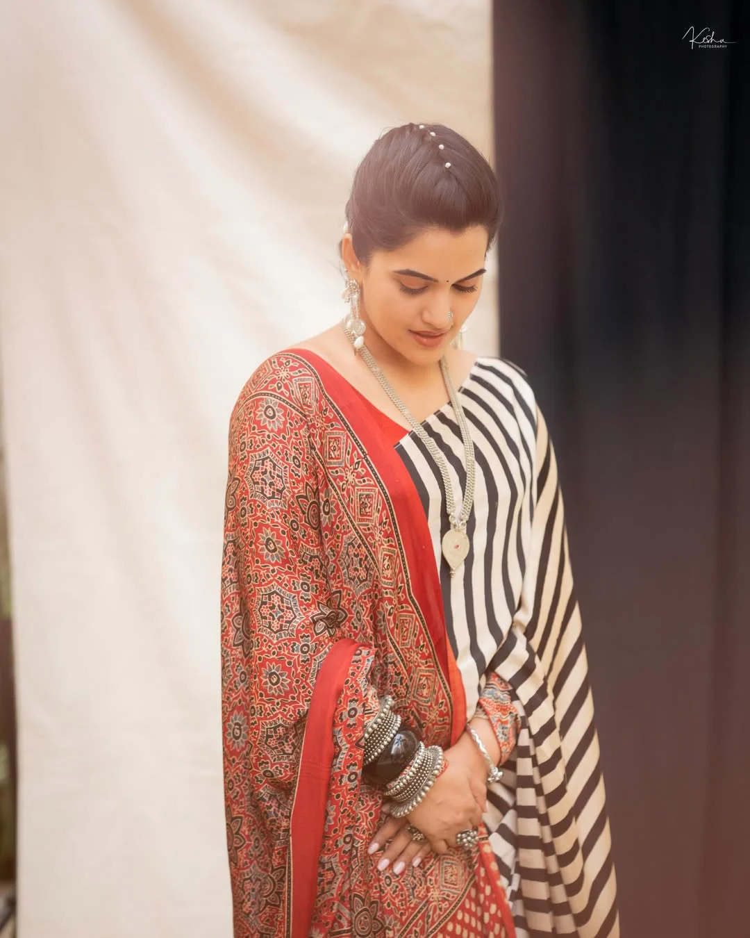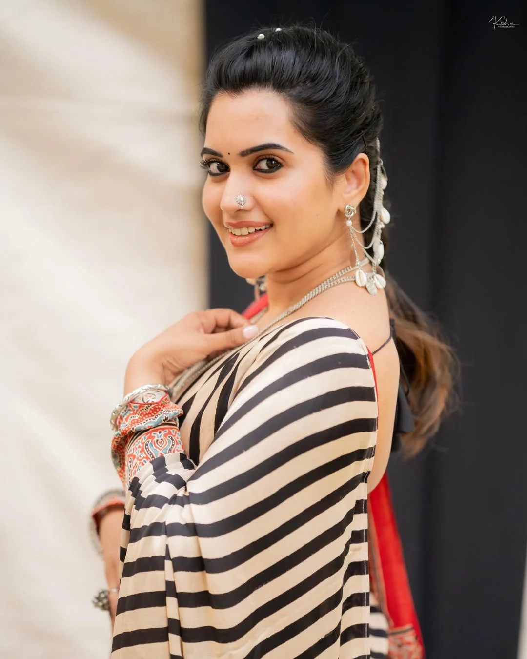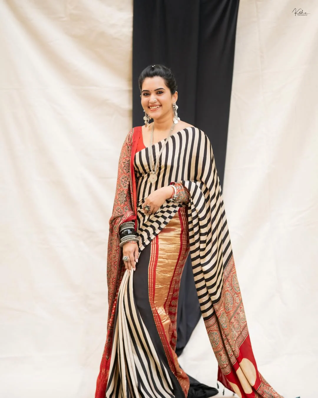 యాంకర్ స్రవంతి (Sravanthi Chokarapu) నలుపు, తెలుపు రంగు చీరలో దిగిన ఫోటోలను తన సోషల్ మీడియాలో షేర్ చేసింది.