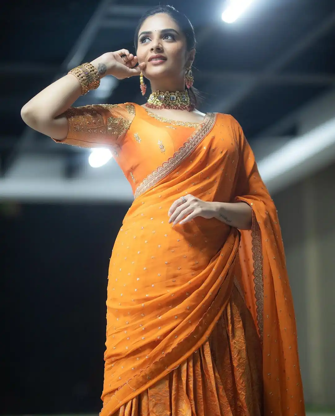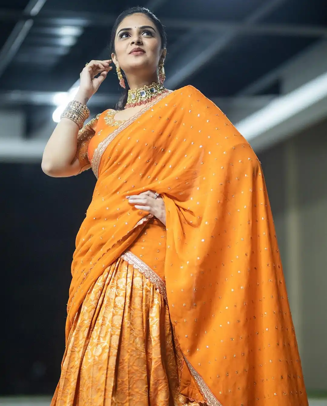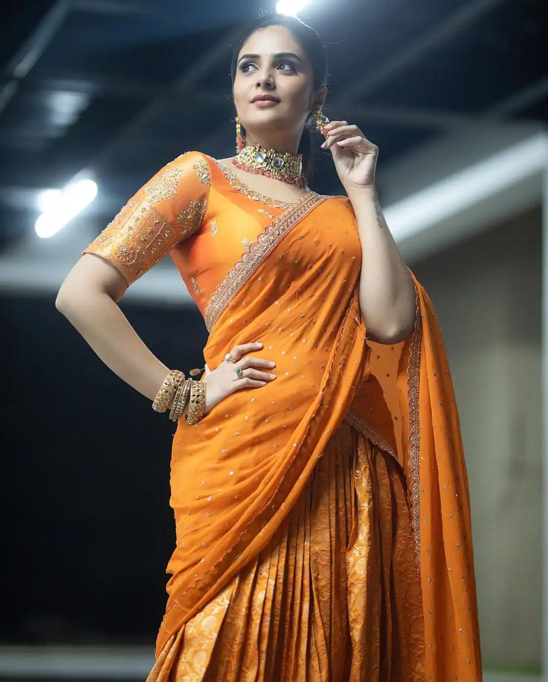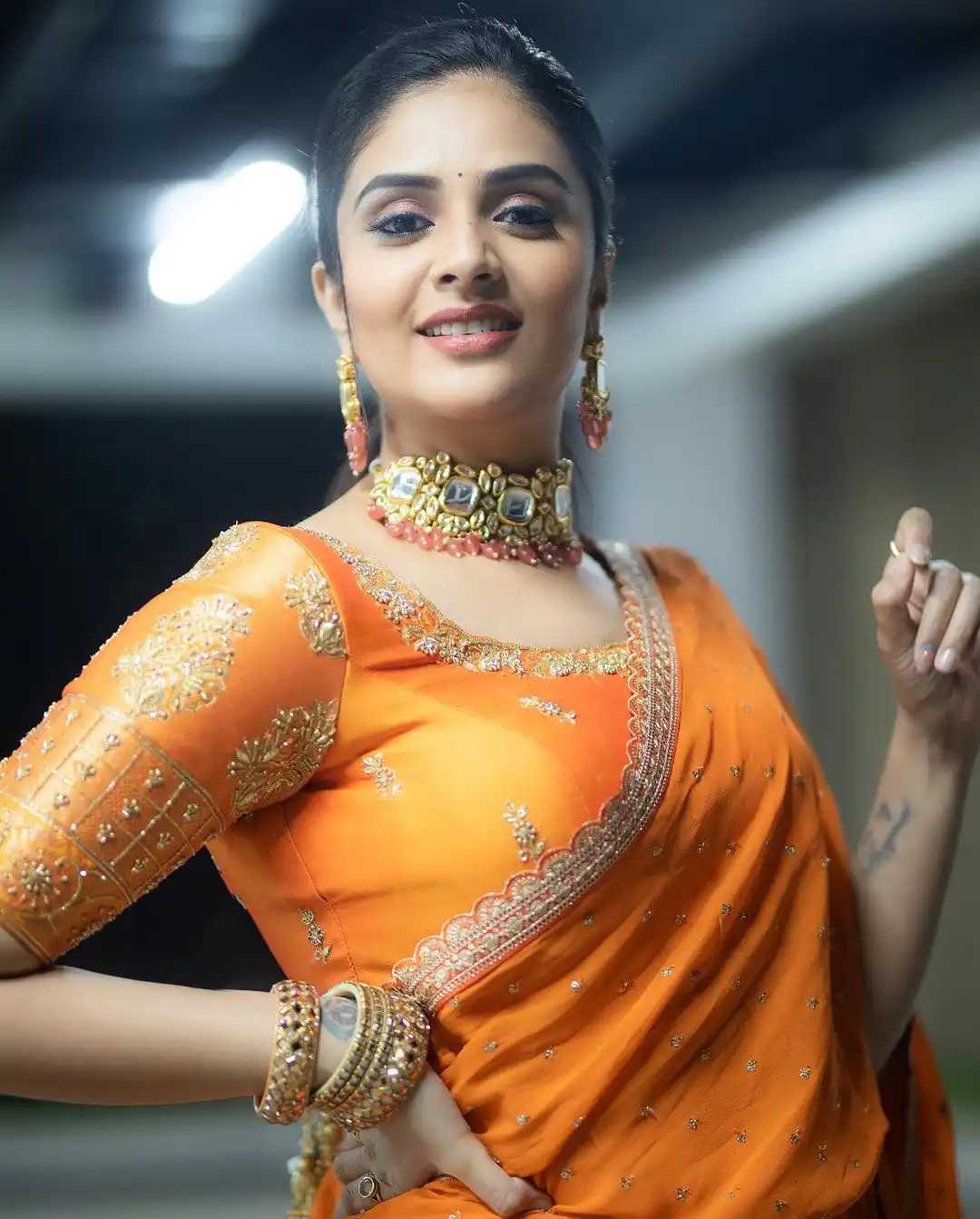 Sreemukhi: హాఫ్ శారీలో అందాలు ఒలకబోస్తున్న శ్రీముఖి