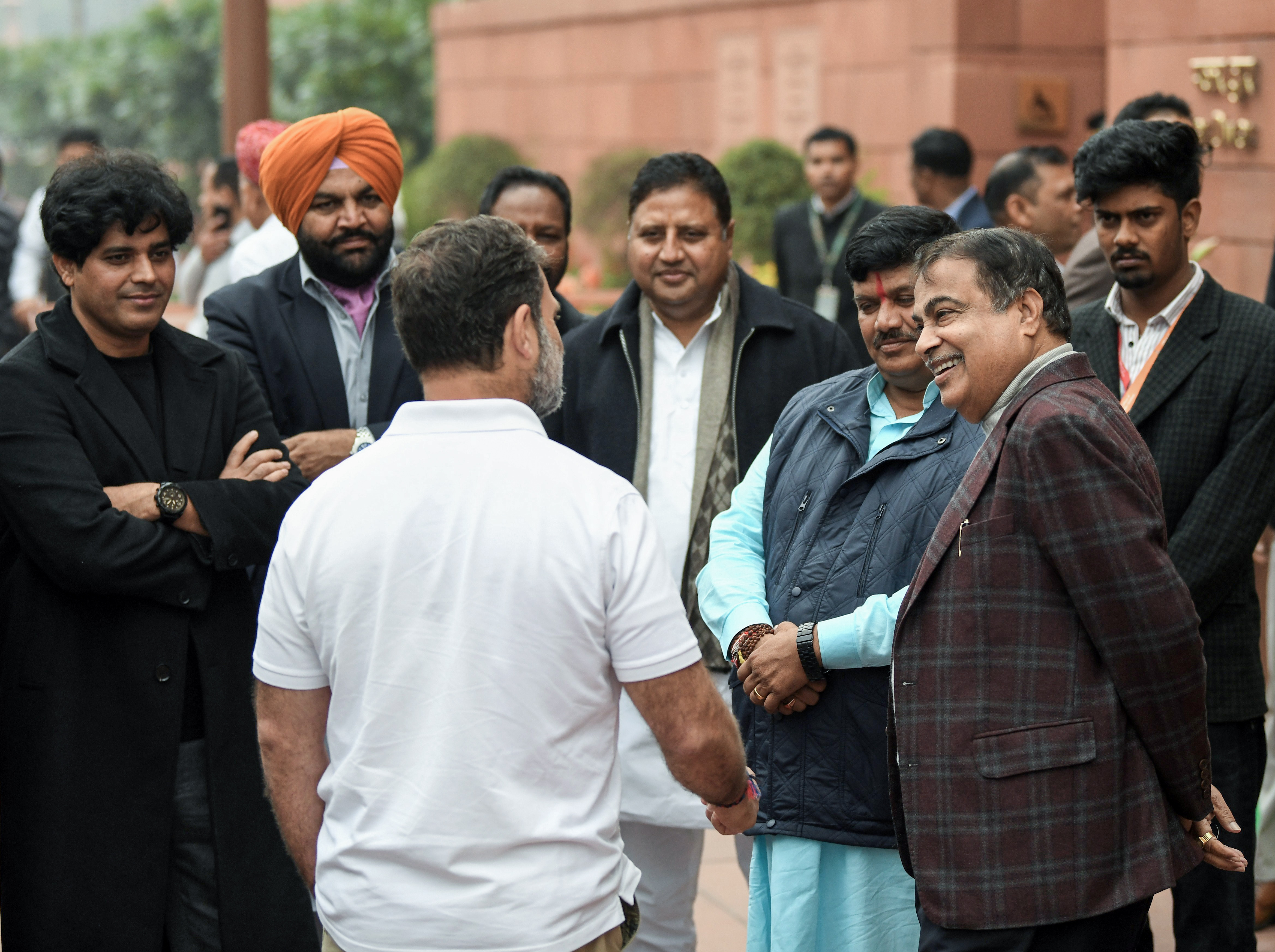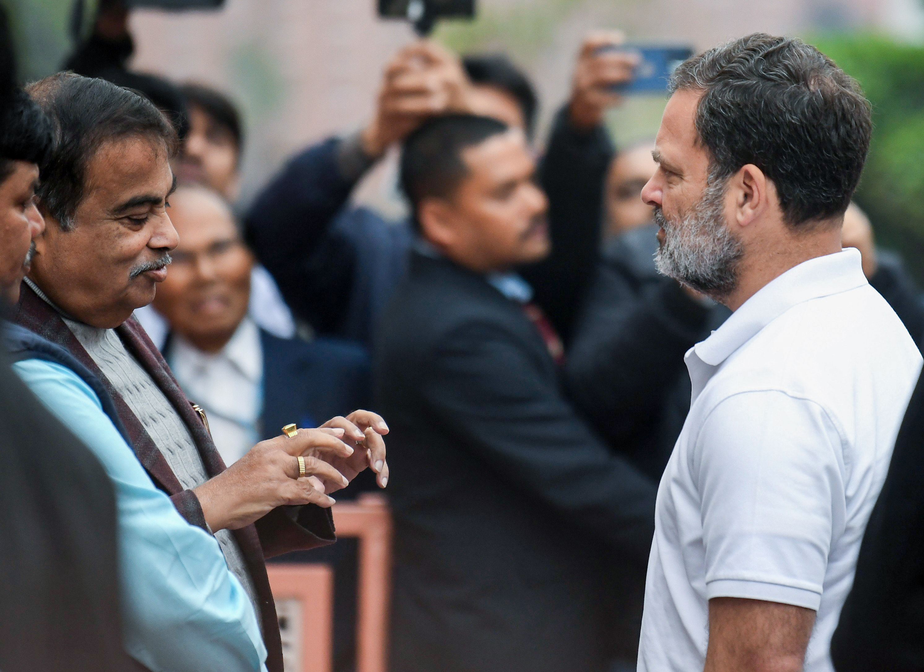 గడ్కరీతో రాహుల్ ముచ్చట్లు.. పార్లమెంట్ వద్ద నేతల సందడి