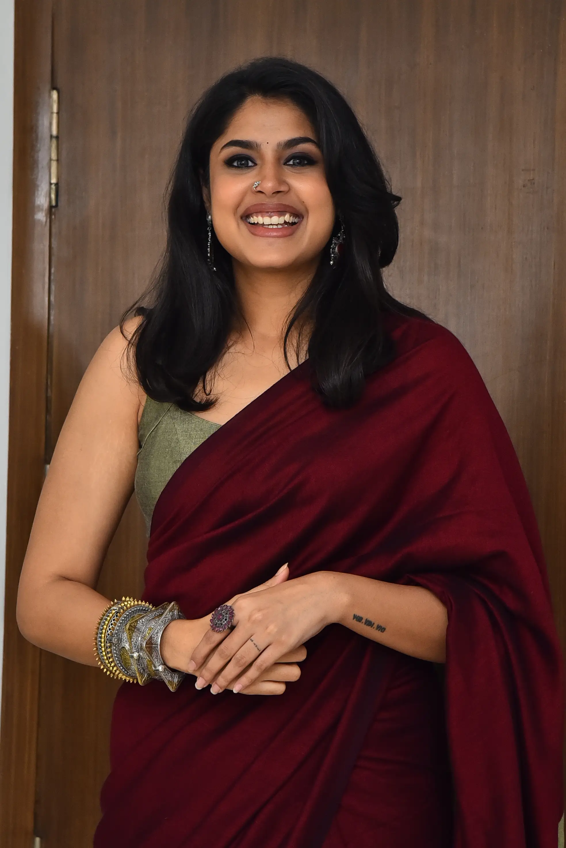 సౌత్ బ్యూటీ ఫరియా అబ్దుల్లా(Faria Abdullah) హీరోయిన్ గా నటిస్తున్న లేటెస్ట్ మూవీ భగవంతుడు. తాజాగా ఈ సినిమా టీజర్ లాంచ్ ఈవెంట్ జరిగింది. ఈ ఈవెంట్ లో మెరూన్ కలర్ డ్రెస్సులో స్టన్నింగ్ లుక్స్ తో అదరగొట్టేసింది ఈ బ్యూటీ.