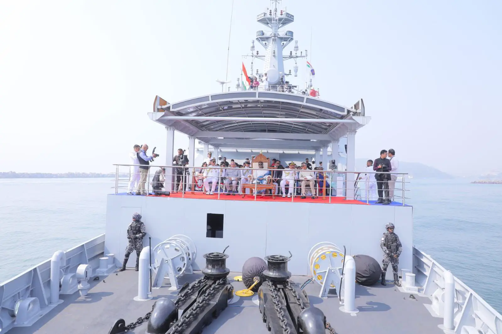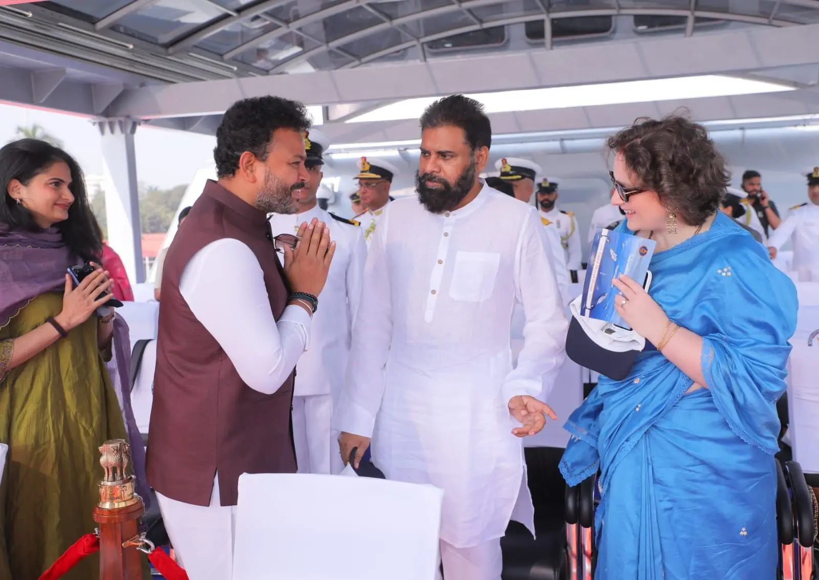 Pawan Kalyan : విశాఖ తీరంలో ఇంటర్నేషనల్ ఫ్లీట్ రివ్యూ (ఐఎఫ్ఆర్) వేడుకలు బుధవారం ఉదయం అత్యంత వైభవంగా నిర్వహించారు. ఈ కార్యక్రమంలో రాష్ట్రపతి ద్రౌపదీ ముర్ము పాల్గొన్నారు. నేవీ సిబ్బంది నుంచి రాష్ట్రపతి గౌరవ వందనం స్వీకరించారు. అనంతరం ఐఎన్ఎస్ సుమేధ నౌకపై రాష్ట్రపతి ముర్ముతో పాటు ఏపీ గవర్నర్ జస్టిస్ అబ్దుల్ నజీర్, సీఎం చంద్రబాబు, డిప్యూటీ సీఎం పవన్కల్యాణ్, కేంద్రమంత్రి రామ్మోహన్నాయుడు ప్రయాణించారు. ఈ కార్యక్రమంలో పవన్ కల్యాణ్ తన సతీమణి అన్నా లెజినోవాతో కలిసి పాల్గొన్నారు. ఇందుకు సంబంధించిన ఫొటోలు సోషల్ మీడియాలో వైరల్ అవుతున్నాయి.