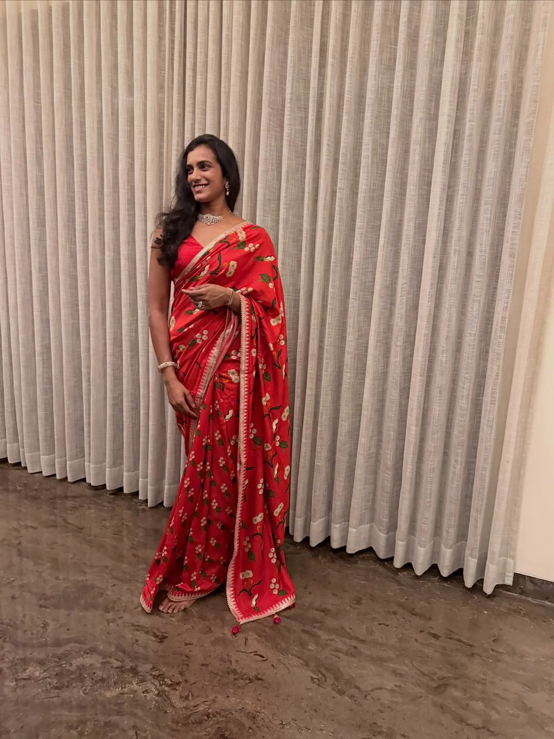 భారత స్టార్ షట్లర్లలో పీవీ సింధు ఒకరు. ఆమె రెండు ఒలింపిక్ పతకాలు (రియో 2016 రజతం, టోక్యో 2020 కాంస్యం) గెలిచిన తొలి భారతీయ మహిళ, ప్రపంచ ఛాంపియన్షిప్లో స్వర్ణం గెలిచిన ఏకైక భారతీయ మహిళగా నిలిచింది. ఆమె చీరకట్టుకున్న ఫోటోలు వైరల్ అవుతున్నాయి. (pics credit PV Sindhu insta)