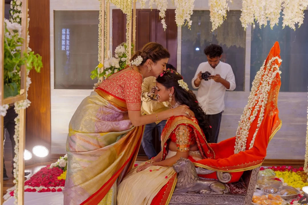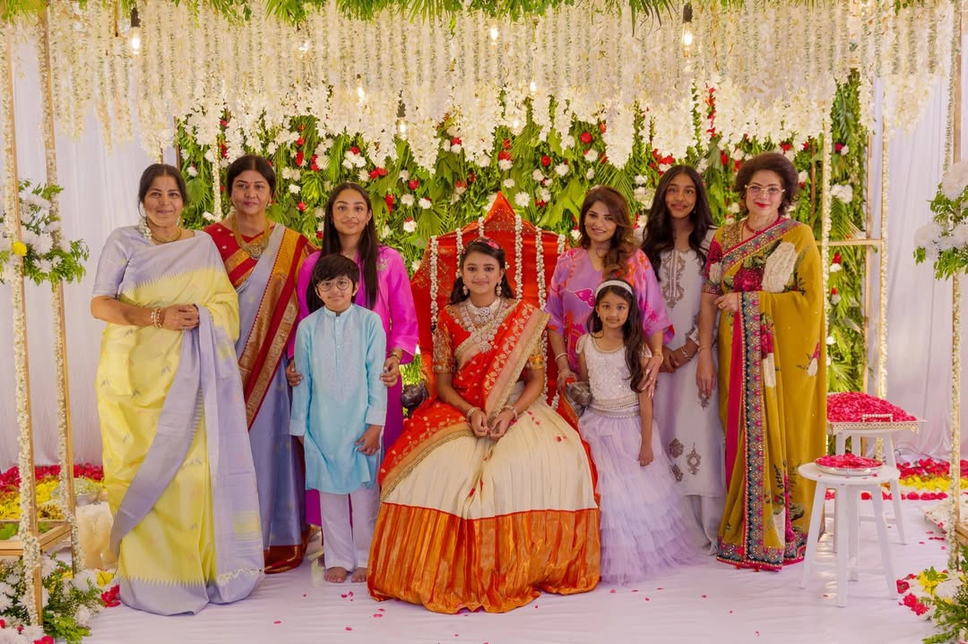 మంచు లక్ష్మి కూతురు (Manchu Lakhsmi Daughter ) విద్యా నిర్వాణ ఓణీల వేడుకను మరోసారి ఘనంగా నిర్వహించారు. నలుగు పెట్టే కార్యక్రమాన్ని ఏర్పాటు చేశారు. ఈ వేడుకకు మోహన్ బాబు దంపతులతో పాటు మంచు విష్ణు భార్య విరానిక, పిల్లలు హాజరు అయ్యారు.