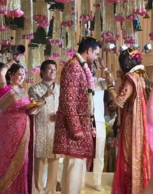 భారత క్రికెట్ దిగ్గజం సచిన్ టెండూల్కర్ కొడుకు అర్జున్ టెండూల్కర్ పెళ్లి (Arjun Tendulkar wedding) అంగరంగ వైభవంగా జరిగింది. ముంబైలోని గలోప్స్ రెస్టారెంట్లో తన ప్రియురాలు సానియా చందోక్ను అర్జున్ వివాహం ఆడాడు. వీరి పెళ్లికి సినీ, రాజకీయ, క్రీడా ప్రముఖులు హాజరు అయ్యారు. ఆంధ్రప్రదేశ్ రాష్ట్ర మంత్రి నారా లోకేష్ తన భార్య బ్రాహ్మణితో కలిసి అర్జున్ పెళ్లికి వెళ్లారు. ప్రస్తుతం ఇందుకు సంబంధించిన ఫోటోలు వైరల్ అవుతున్నాయి.