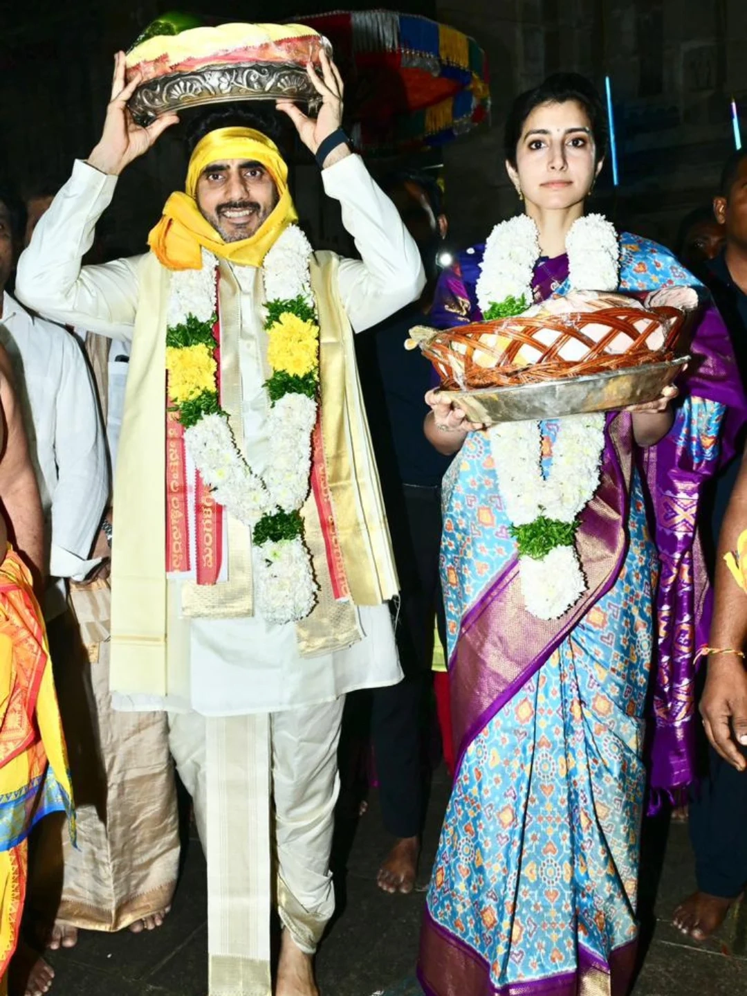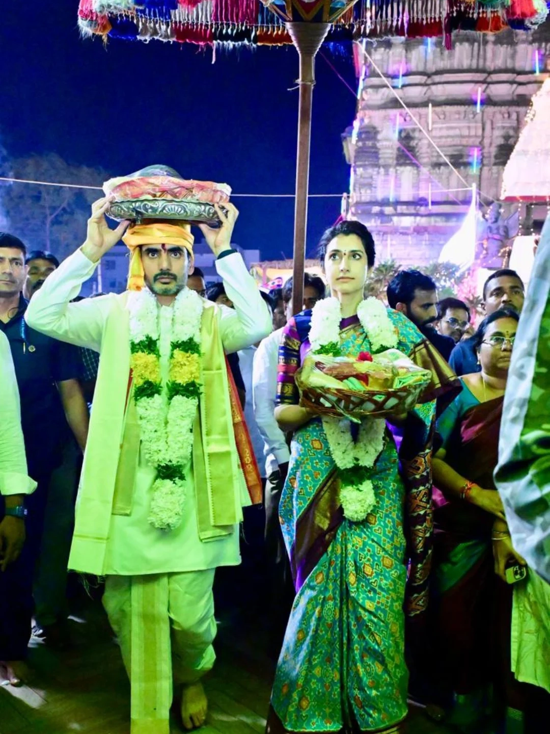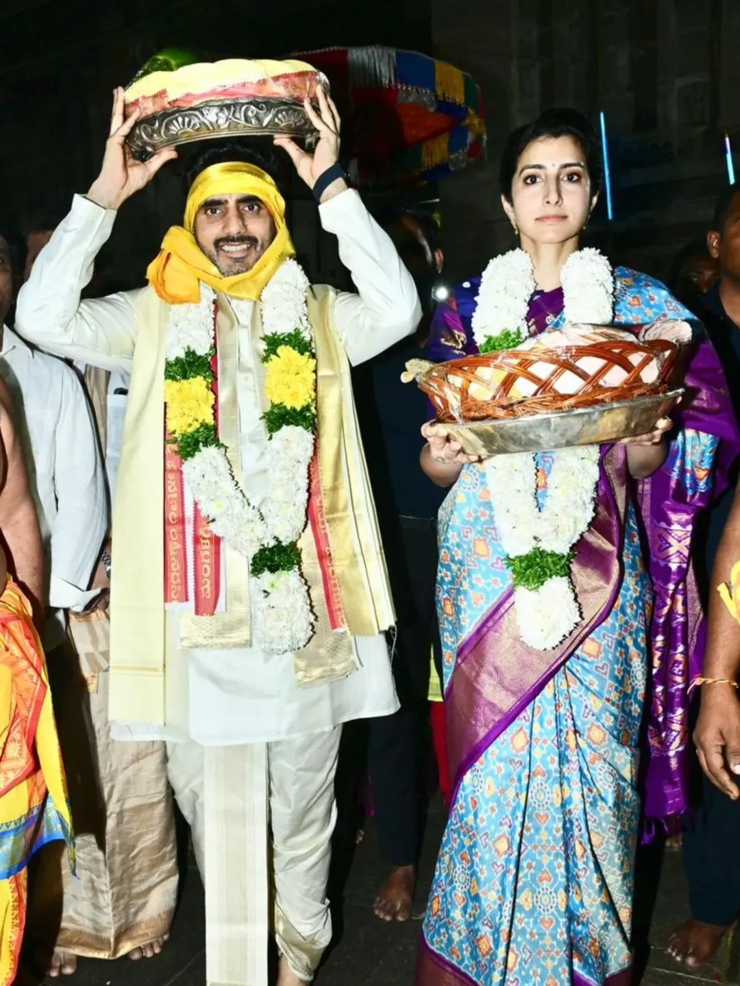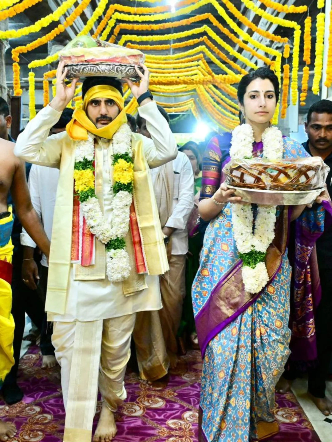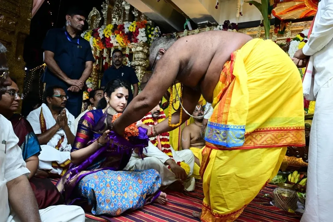 మంత్రి నారా లోకేష్(Nara Lokesh), బ్రాహ్మణి దంపతులు మంగళగిరిలో శ్రీ లక్ష్మీ నరసింహస్వామి బ్రహ్మోత్సవాలలో పాల్గొన్నారు. లక్ష్మీ నరసింహ స్వామి వారికి పట్టు వస్త్రాలు సమర్పించారు.