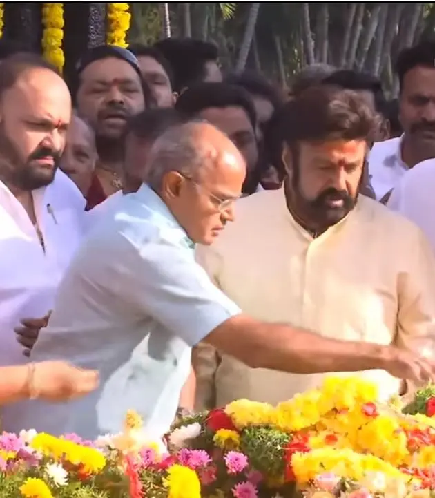 NTR 30th Death Anniversary : ఎన్టీఆర్ వర్ధంతి సందర్భంగా హైదరాబాద్లోని ఎన్టీఆర్ ఘాట్ వద్ద కుటుంబ సభ్యులతో కలిసి సినీ నటుడు, ఎమ్మెల్యే నందమూరి బాలకృష్ణ నివాళులర్పించారు. బాలకృష్ణతోపాటు నందమూరి రామకృష్ణ, సుహాసిని తదితరులు ఎన్టీఆర్ ఘాట్ వద్దకు చేరుకొని ఘనంగా నివాళులర్పించారు. అంతకుముందు సీఎం చంద్రబాబు సతీమణి, నారా భువనేశ్వరి, ఏపీ మంత్రి నారా లోకేశ్, నందమూరి కల్యాణ్ రామ్, లక్ష్మీపార్వతి, మోత్కుపల్లి నర్సింహులు, బాబూ మోహన్ తదితరులు ఎన్టీఆర్ ఘాట్ వద్దకు చేరుకొని నివాళులర్పించారు. పెద్ద సంఖ్యలో ఎన్టీఆర్ అభిమానులు, టీడీపీ నేతలు, కార్యకర్తలు ఎన్టీఆర్ ఘాట్ వద్దకు తరలివచ్చి ఘనంగా నివాళులర్పించారు.