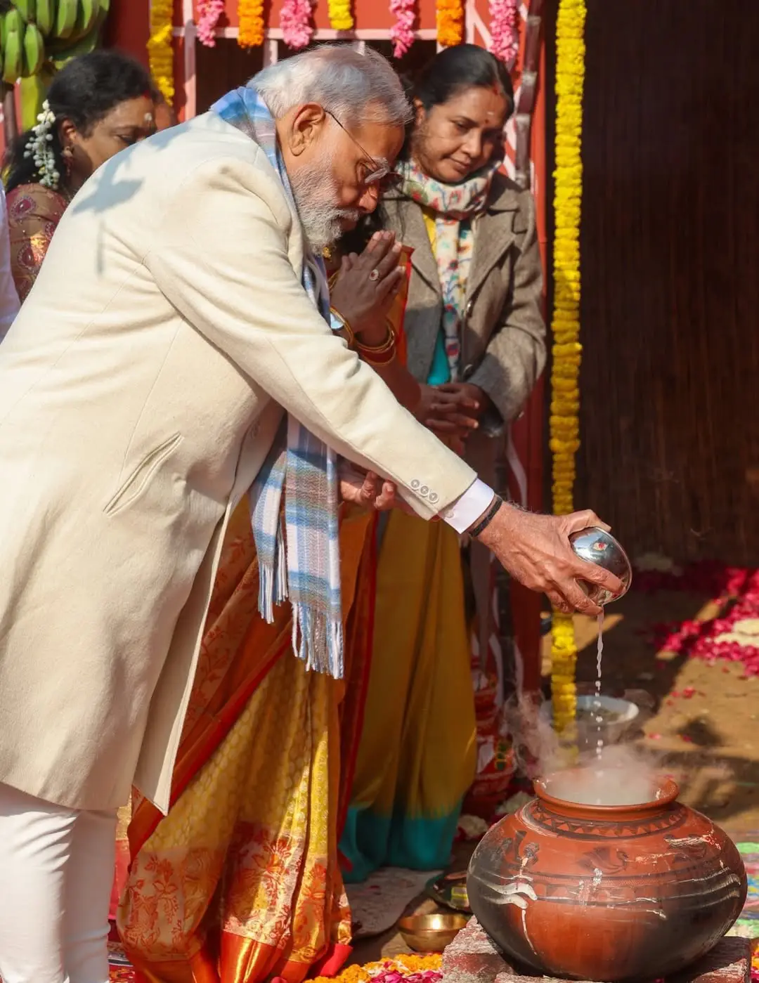 PM Modi : పొంగల్ వేడుకల్లో పాల్గొని పొంగలి వండిన ప్రధాని నరేంద్ర మోదీ.. ఫొటోలు వైరల్