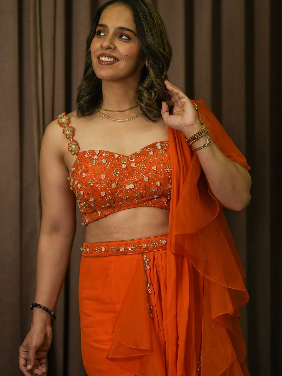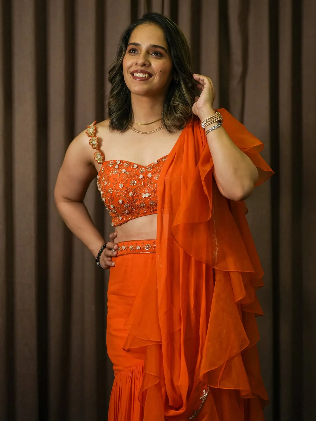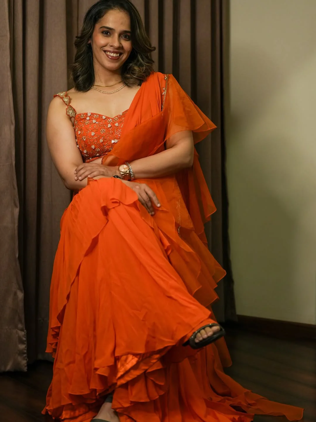 Telugu » Photo Gallery » Saina Nehwal In Orange Colour Dress Photos Viral Vm