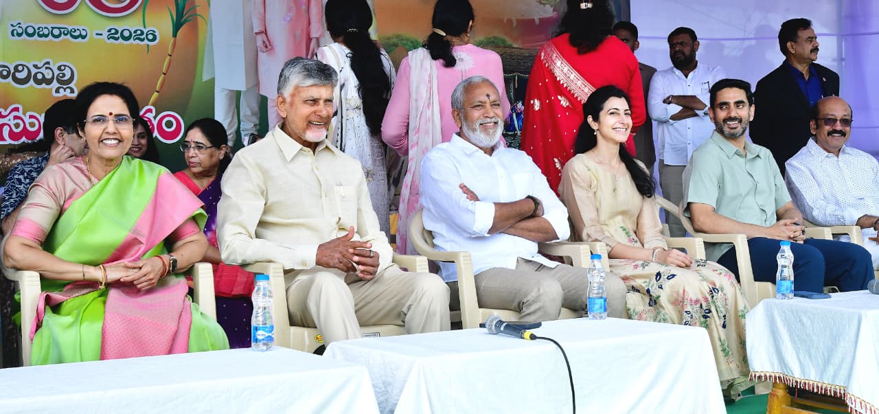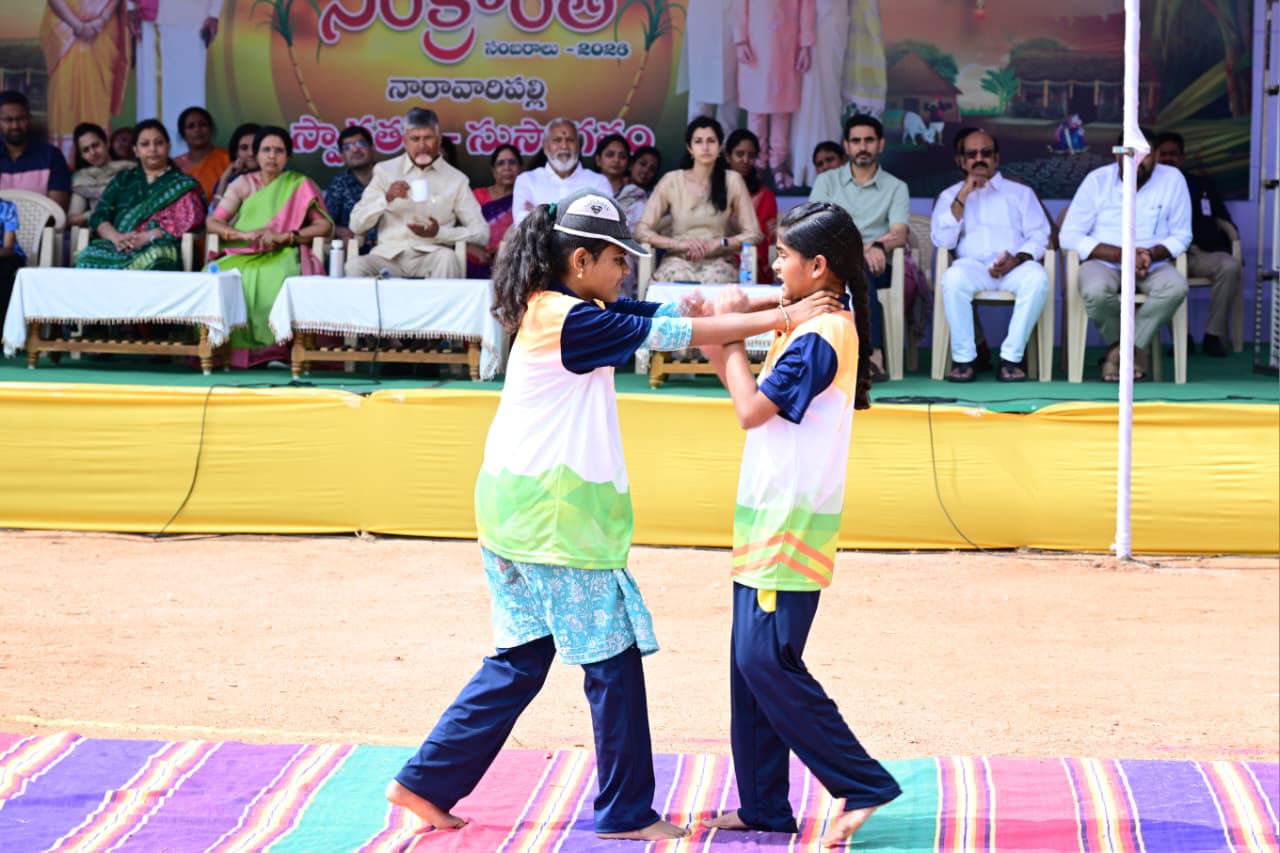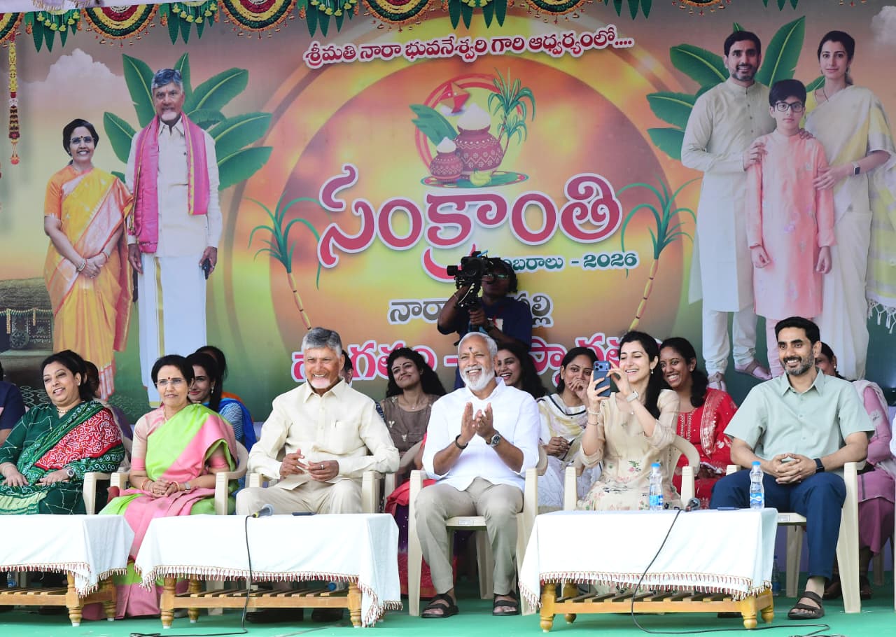 ముఖ్యమంత్రి చంద్రబాబు స్వగ్రామం నారావారిపల్లెలో సంక్రాంతి సంబరాలు అంబరాన్నంటాయి. కుటుంబ సభ్యులతో కలిసి చంద్రబాబు సంక్రాంతి వేడుకల్లో పాల్గొన్నారు. ముగ్గుల పోటీలు, సాంస్కృతిక కార్యక్రమాలతో నారావారిపల్లె సందడిగా మారింది. నారా, నందమూరి కుటుంబ సభ్యులు ఈ ఉత్సవాల్లో పాల్గొన్నారు. ఇక చంద్రబాబు మనవడు నారా దేవాన్ష్ స్పెషల్ అట్రాక్షన్ గా నిలిచాడు. గ్రామంలోని పిల్లలతో కలిసి ఆటపోటీల్లో పాల్గొన్నాడు. మనవడి ఆటలు చూస్తూ చంద్రబాబు దంపతులు మురిసిపోయారు. చప్పట్లు కొడుతూ పిల్లలను ప్రోత్సహించారు.