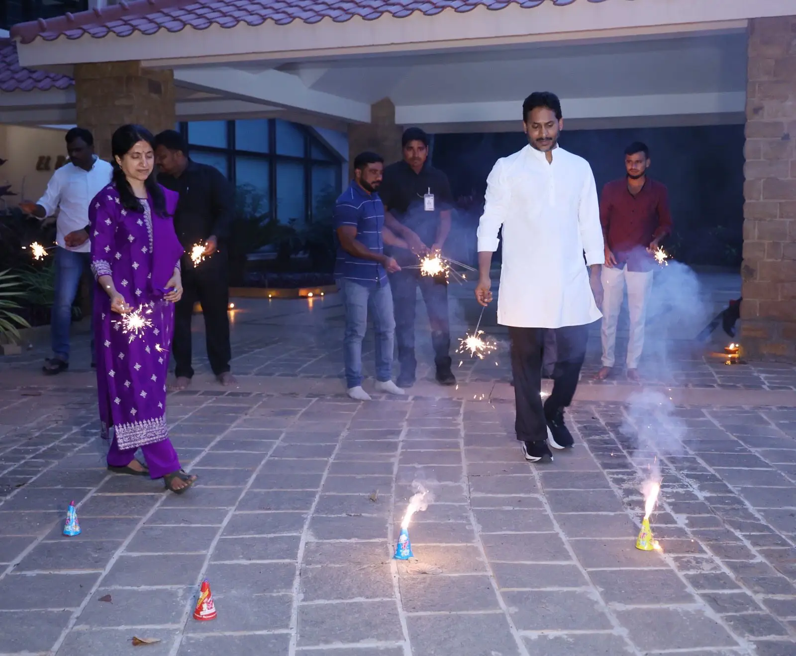 YS Jagan : దీపావళి వేడుకల్లో వైఎస్ జగన్ దంపతులు.. చిచ్చుబుడ్లు పేలుస్తూ సందడి సందడిగా.. ఫొటోలు వైరల్