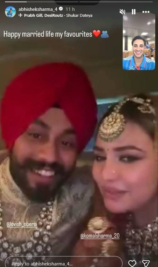 అభిషేక్ శర్మ (Abhishek Sharma) సోదరి కోమల్ శర్మ వివాహం లుథియానాకు చెందిన ప్రముఖ వ్యాపార వేత్త లవీశ్తో అమృత్సర్లో శుక్రవారం (అక్టోబర్ 3)న ఘనంగా జరిగింది. అయితే.. పెళ్లికి అభిషేక్ హాజరు కాలేదు. ఈ విషయాన్ని అతడి సోదరి ధ్రువీకరించింది.