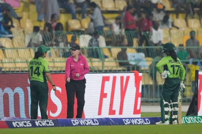 248 పరుగుల లక్ష్యంతో పాక్ బరిలోకి దిగింది. ఇన్నింగ్స్ నాలుగో ఓవర్లో ఆసక్తికర ఘటన చోటు చేసుకుంది. ఈ ఓవర్ను క్రాంతి గౌడ్ వేసింది. ఈ ఓవర్లోని ఆఖరి బంతిని పాక్ బ్యాటర్ మునీబా అలీ ఎదుర్కొంది. అయితే.. బ్యాట్ను మిస్సైన బంతి మునీబా ప్యాడ్లను తాకింది. దీంతో ఎల్బీడబ్ల్యూ అంటూ భారత ఫీల్డర్లు అప్పీల్ చేయగా ఫీల్డ్ అంపైర్ నాటౌట్ అని చెప్పాడు. అదే సమయంలో భారత ఫీల్డర్ దీప్తీ శర్మ బంతిని నేరుగా వికెట్లను విసిరివేయడంతో స్టంప్స్ పడ్డాయి.