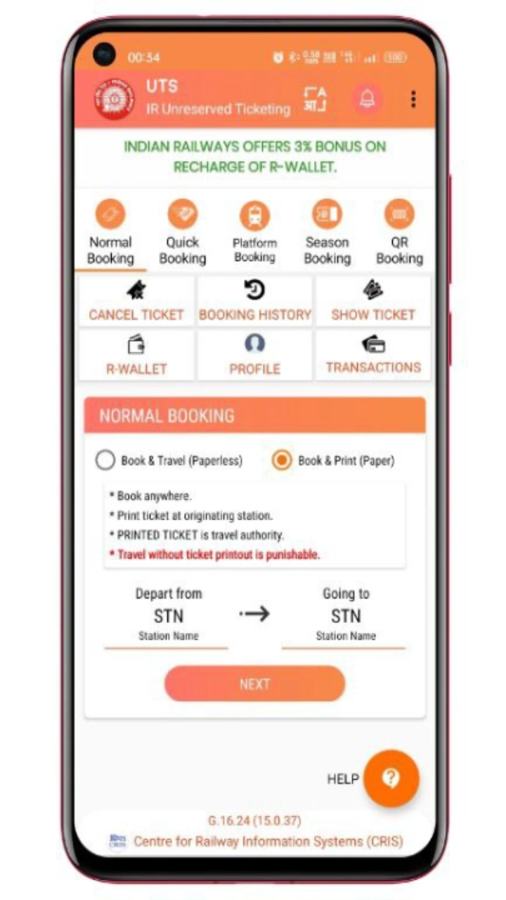బుక్ అండ్ ట్రావెల్ (పేపర్లెస్), ఆపై వంటి వివరాలను రిజిస్టర్ చేయండి. స్టేషన్, డెస్టినేషన్ స్టేషన్ నుంచి బయలుదేరండి.